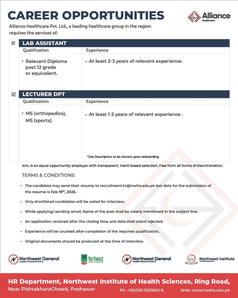 - How to Apply: Interested candidates should send their resume to recruitment.hr@nwiHS.edu.pk.