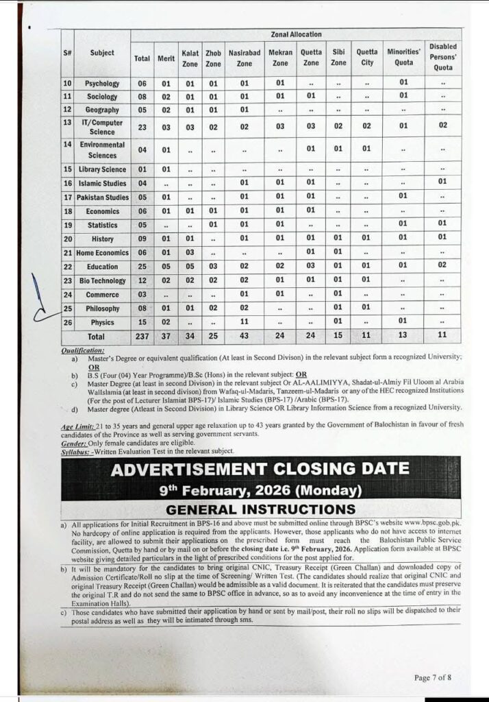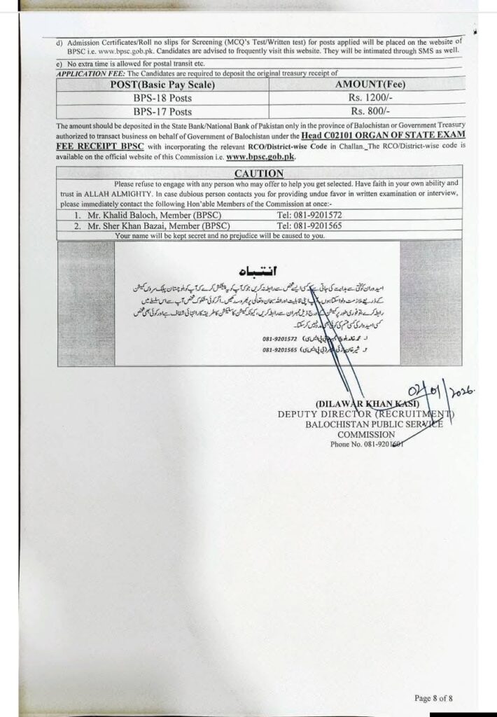 - Recruitment conducted by Balochistan Public Service Commission (BPSC)