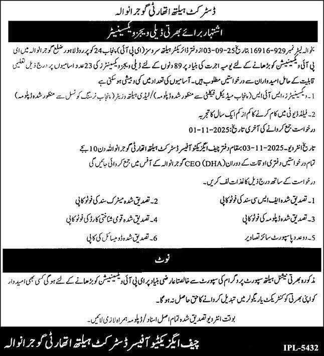 - How to Apply: Submit your applications to the office of the CEO (DHA), Gujranwala.