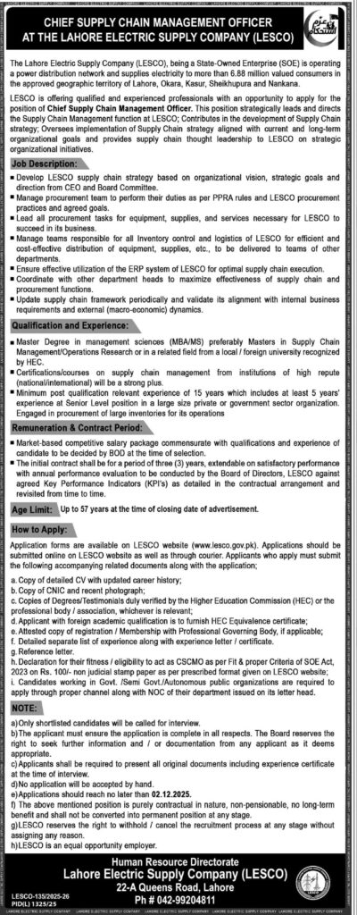 “Apply for the Chief Supply Chain Management Officer position at LESCO. Lead strategic supply chain initiatives in a state-owned enterprise. Submit your application by December 2, 2025.”