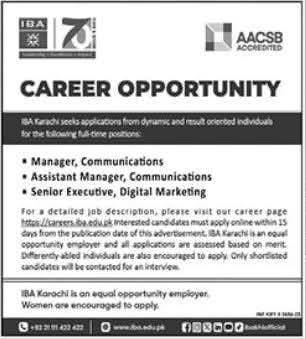 Join IBA Karachi today! Explore dynamic career opportunities including Manager, Assistant Manager, and Senior Executive roles. Apply now for a rewarding career.