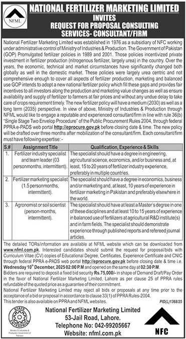 Date 22-11-2025 National Fertilizer Marketing Limited NFML Consulting Jobs