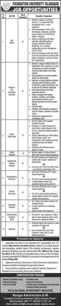 Apply for Foundation University Islamabad Jobs 2026. Explore vacancies, qualifications, experience requirements, and application process for LMS Officer, Media, Technical, and Support staff roles.