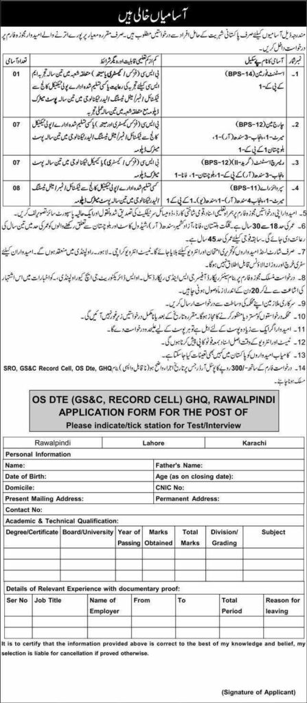 Available Positions at GHQ Rawalpindi