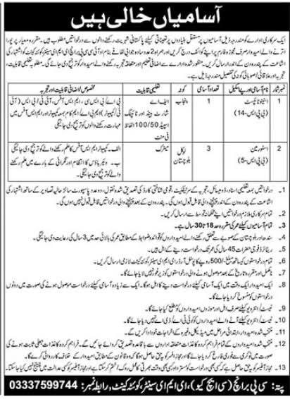 | Helper (BPS-1) | 1 | – Primary education- Relevant experience preferred- Age limit 18-30 years |