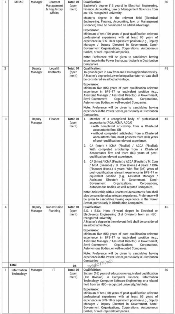 - Key Requirement: Candidates must possess significant post-qualification experience in a relevant field, typically 5-10 years at a managerial level (BPS-17/18 equivalent). Preference will be given to candidates with experience in Distribution Companies (DISCOs) or the power sector.