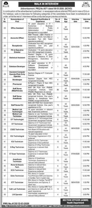 Health Department Walk-In Interview Jobs 2026 – Medical, Technical and Administrative Vacancies