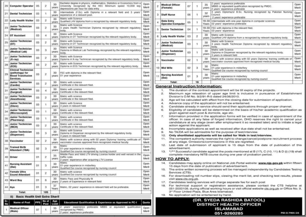 - Mailing Address: Registrar, Health Services Academy, Park Road, Chak Shahzad, Islamabad.