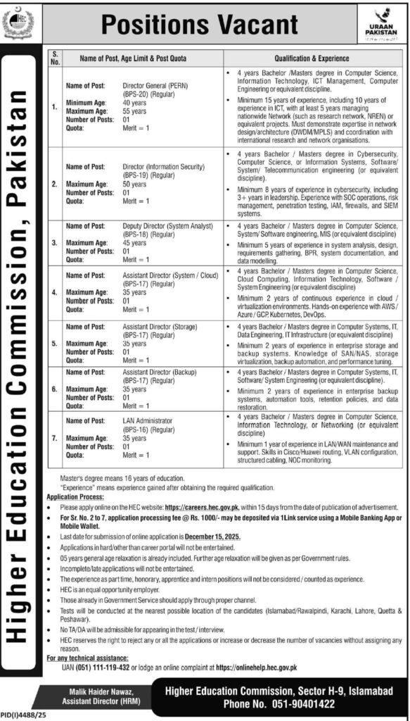 - Apply online through the HEC website: careers.hec.gov.pk.