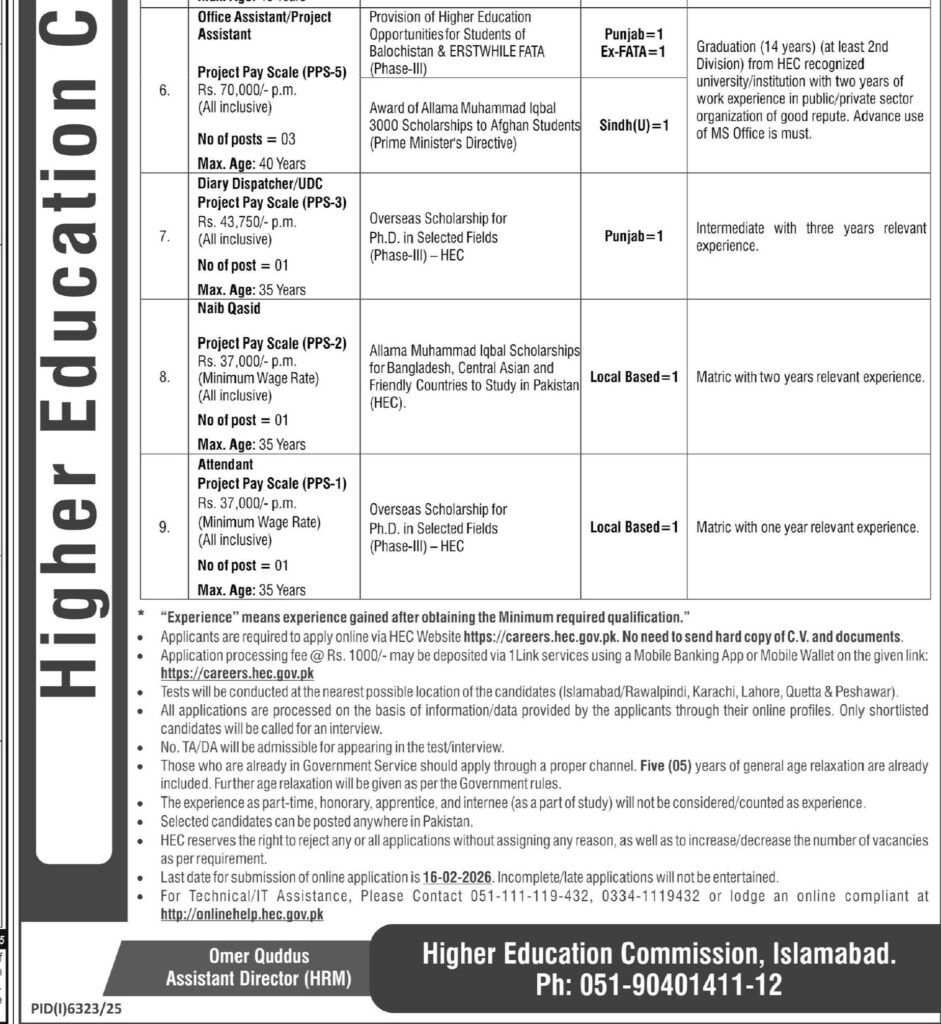Higher Education Commission HEC Jobs 2026 – Project Manager, Accounts Manager, Assistant, and More Vacancies
