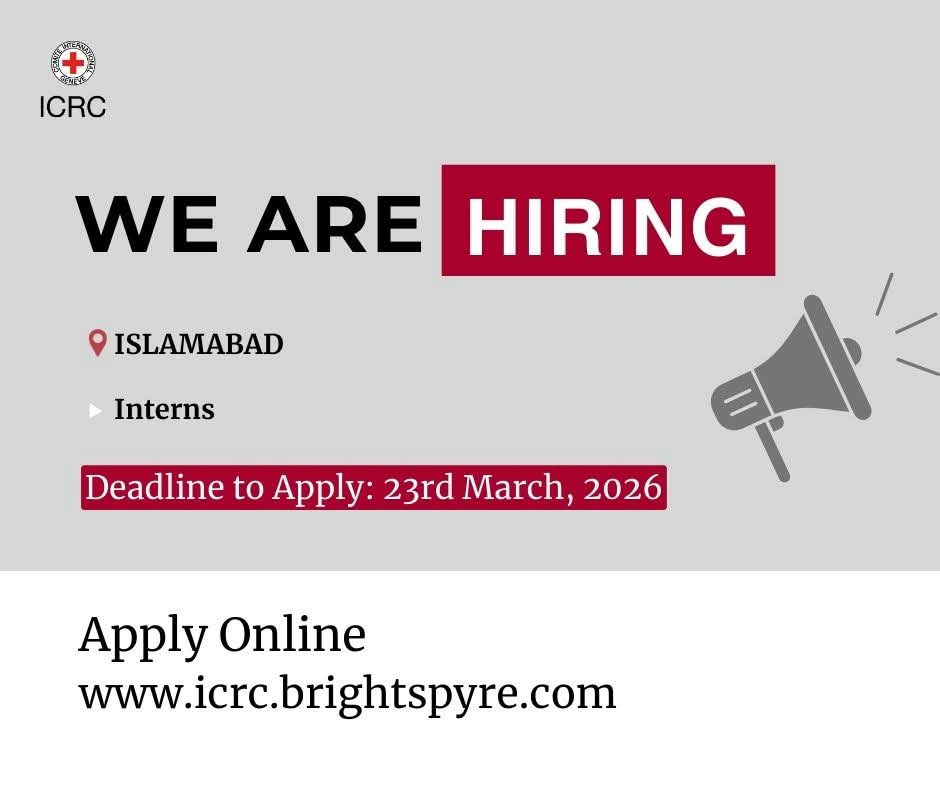 The International Committee of the Red Cross (ICRC) is offering internship opportunities in Islamabad. Apply by March 23, 2026, and gain valuable experience in humanitarian work.