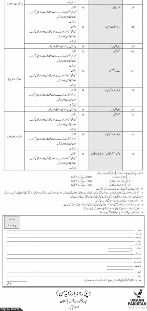 - Contact Information: For more details, you can visit the Supreme Court of Pakistan website or use the contact details provided in the advertisement.