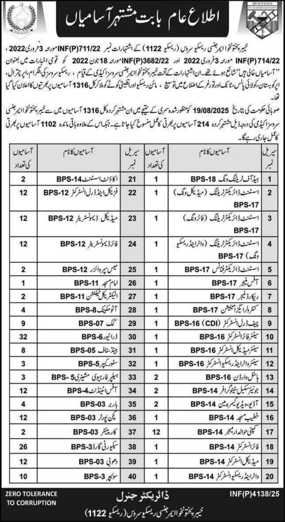 • How to Apply: Submit applications with relevant documents (CV, CNIC, Experience Certificates) via KP Rescue 1122 Portal or the provided contact information.
