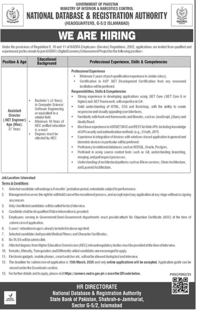 Explore career opportunities at NADRA with various job positions available for experienced IT professionals and engineers. Positions include roles for Assistant Directors, Technical Resources, and more. Learn about the qualifications, experience requirements, and deadlines.