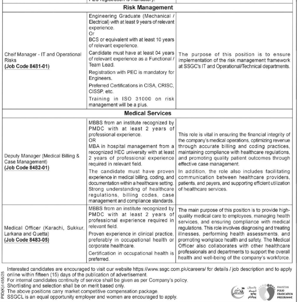 - How to Apply: Interested candidates must apply online through SSGC’s Career Portal.