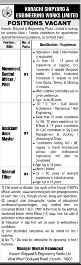 - Apply online: https://www.karachishipyard.com.pk/page/careers