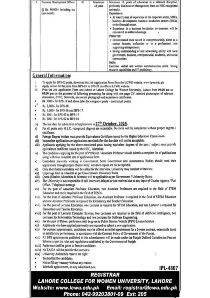 Lahore College for Women University Hiring: Multiple Teaching Positions in 2025
