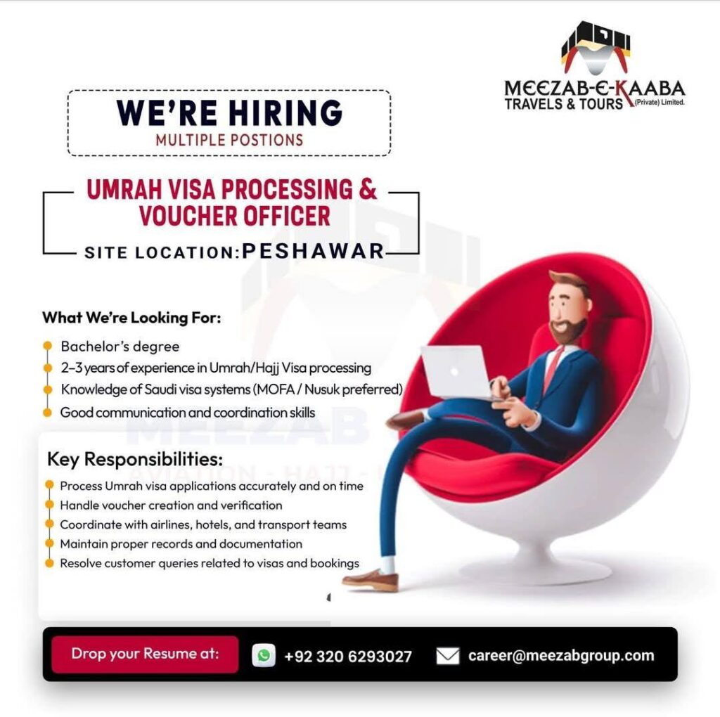 Apply for Umrah Visa Processing Officer jobs in Peshawar 2026. Travel agency hiring candidates with visa processing experience. Check eligibility, requirements, and apply now.