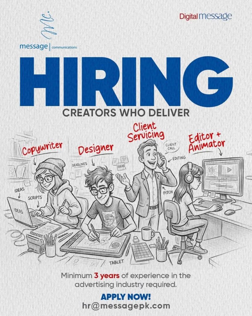 • How to Apply: Interested candidates who meet the three-year experience threshold should send their updated CV and portfolio to the HR department via email at hr@messagepk.com.