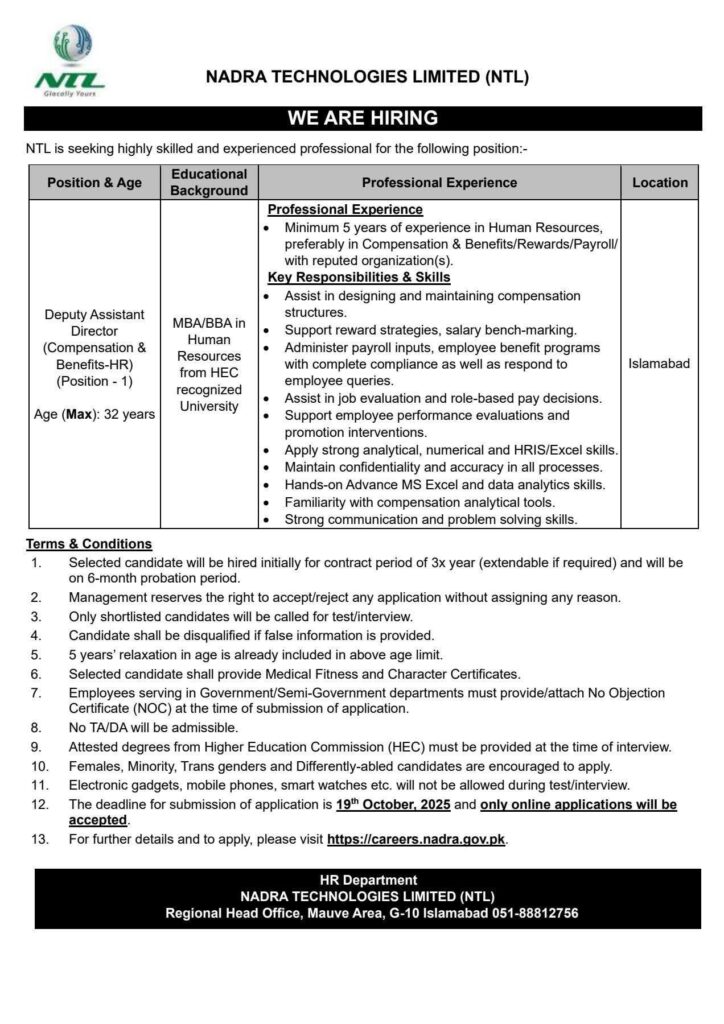 - Application Process: Online applications only at NADRA Careers