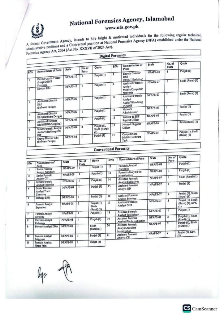 National Forensics Agency NFA Jobs 2026 – Multiple Positions in Digital and Conventional Forensics