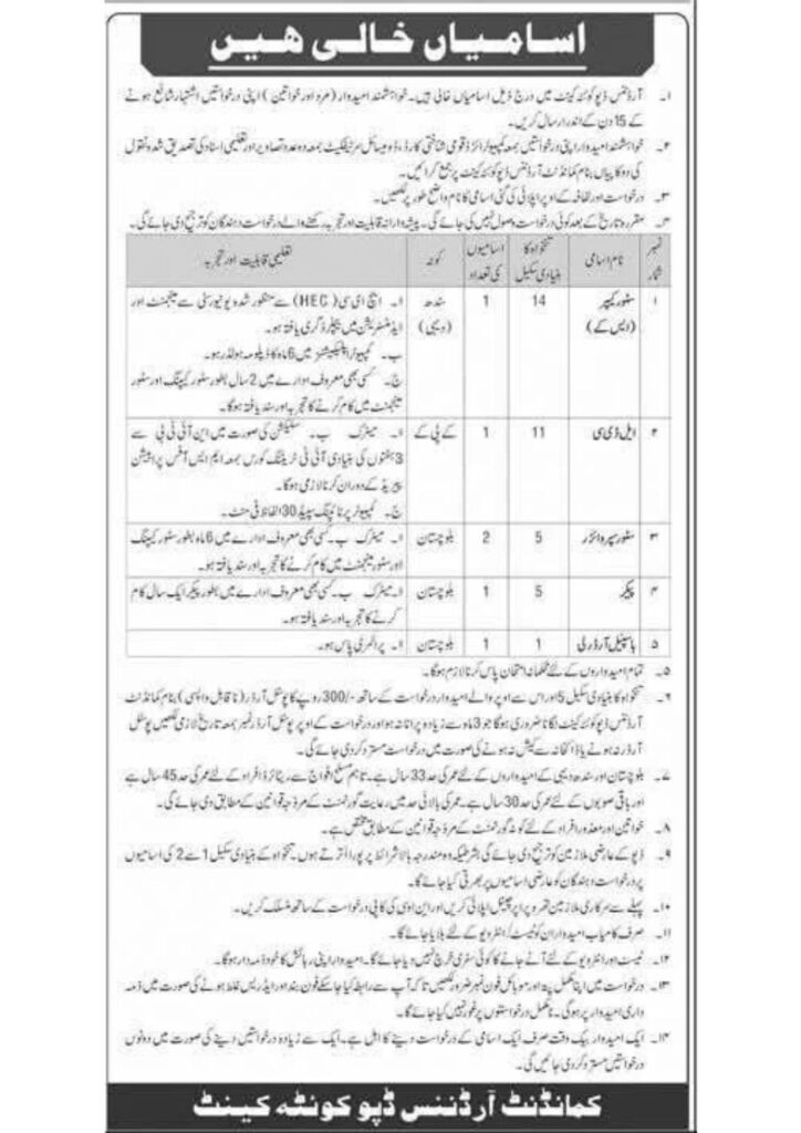 Ordinance Depot Quetta Job Openings 2025 – Apply for Various Positions Now