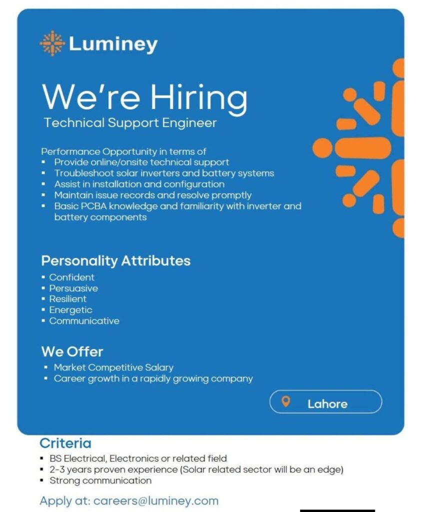 | Assistant Manager Project Sales | MBA in Marketing + B.E Electrical/Electronic (HEC recognized or equivalent) | Minimum 5 years in sales, business development, or CRM | 01 |