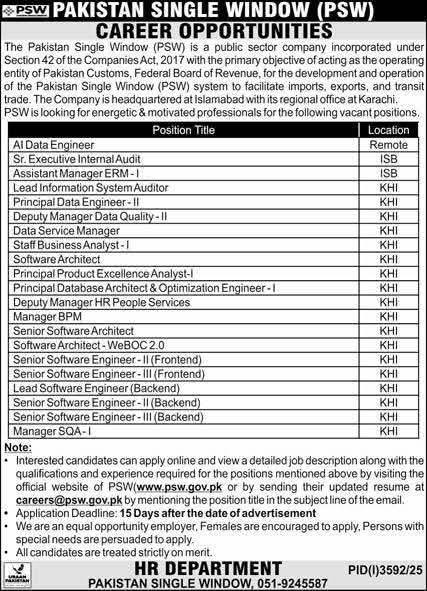 Looking for Pakistan Single Window PSW Jobs 2025? Apply online for the latest government job openings in Islamabad, Karachi, and Remote positions. Explore IT, Audit, and Management roles today at www.psw.gov.pk.