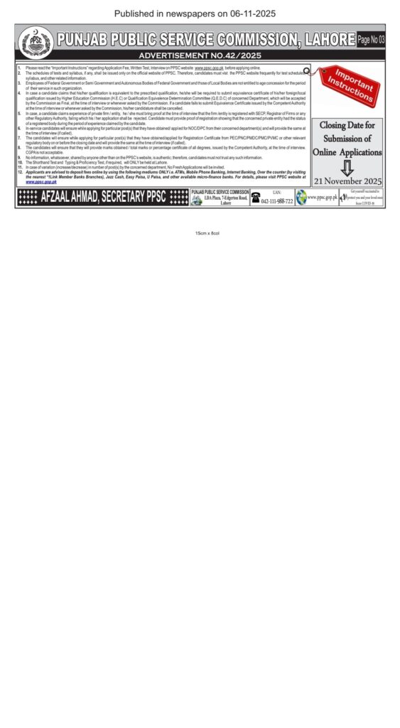PPSC Jobs 2025 Advertisement No. 42 2025 – Apply Online for Latest Punjab Public Service Commission Vacancies