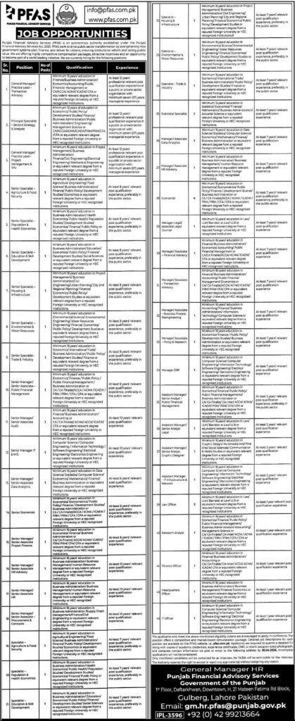 Apply for PFAS Jobs 2026 in Lahore. Explore 40+ vacancies in finance, IT, HR, engineering, and policy roles. Check qualifications, experience, posts, eligibility, and application process.