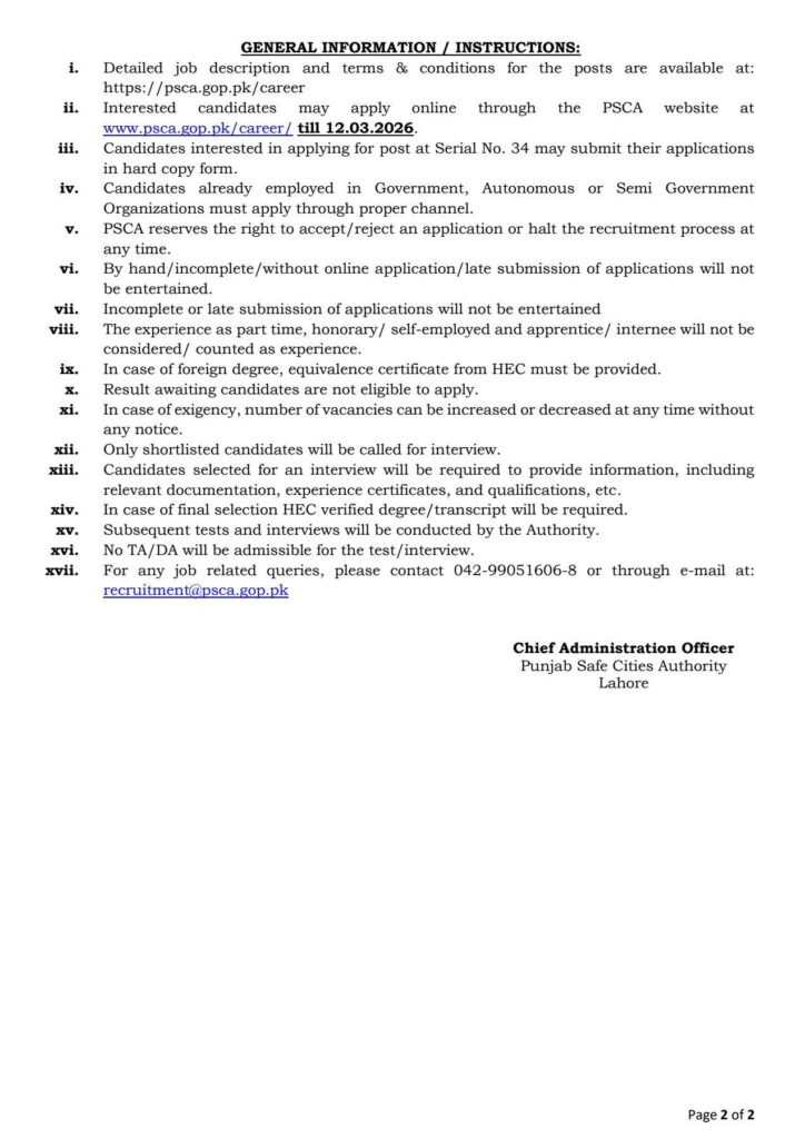 - Apply online via the official PSCA website by 12 March 2026.