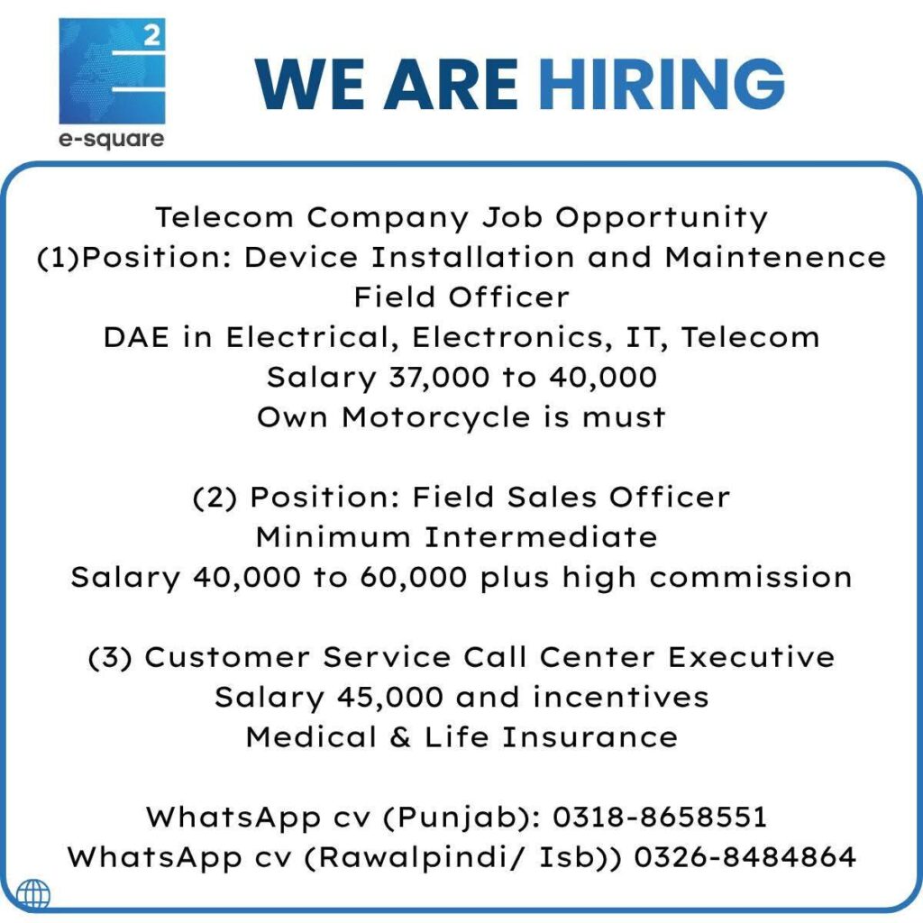 Apply for telecom company jobs in Pakistan 2026 including field installation officer, sales officer, and call center executive roles. Competitive salaries, incentives, and quick WhatsApp application process available.