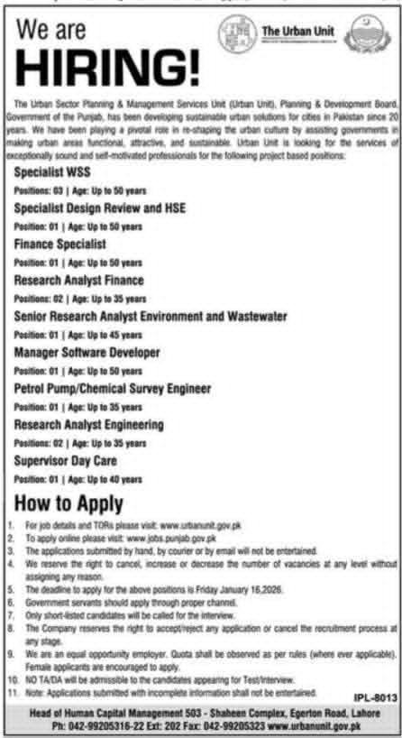 Apply for Urban Unit Punjab Jobs 2025 offering multiple government career opportunities in planning, engineering, finance, and research fields. Ideal roles for qualified professionals seeking stable public sector employment.